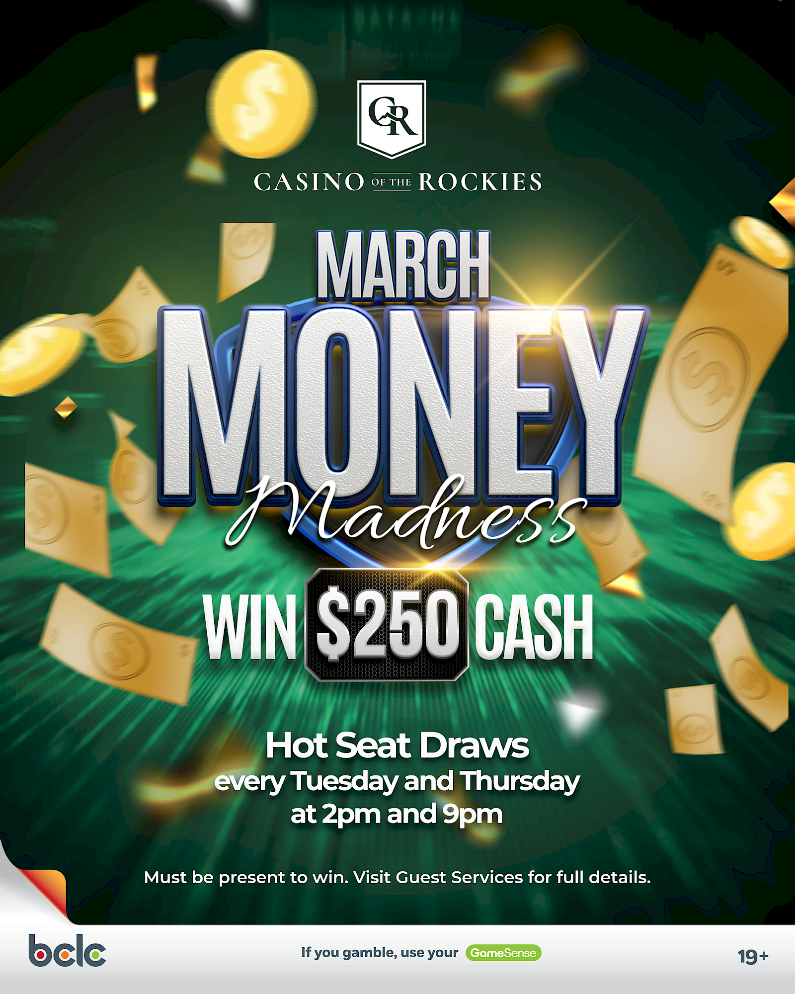 Join us every Tuesday and Thursday in March for March Money Madness. Enjoy the excitement of Hot Seat Draws at 2 PM and 9 PM!