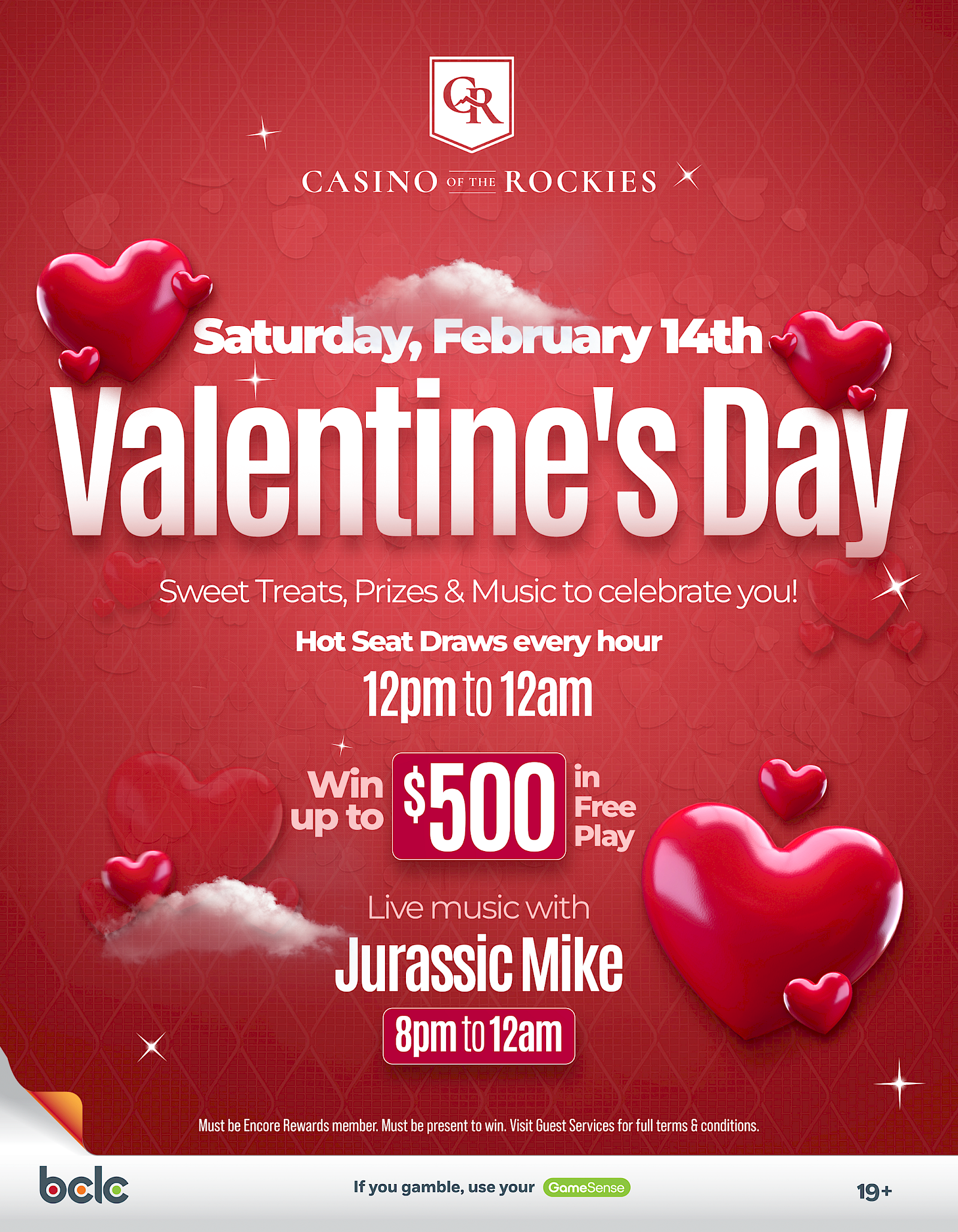 Join us at Casino of the Rockies on Saturday, February 14th for a day and evening filled with luck and sweet surprises!